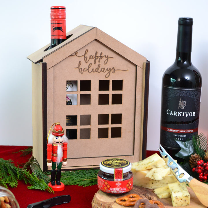 🏠 Estuche en forma de casita navideña de madera reutilizable, ideal para decorar o conservar como recuerdo.